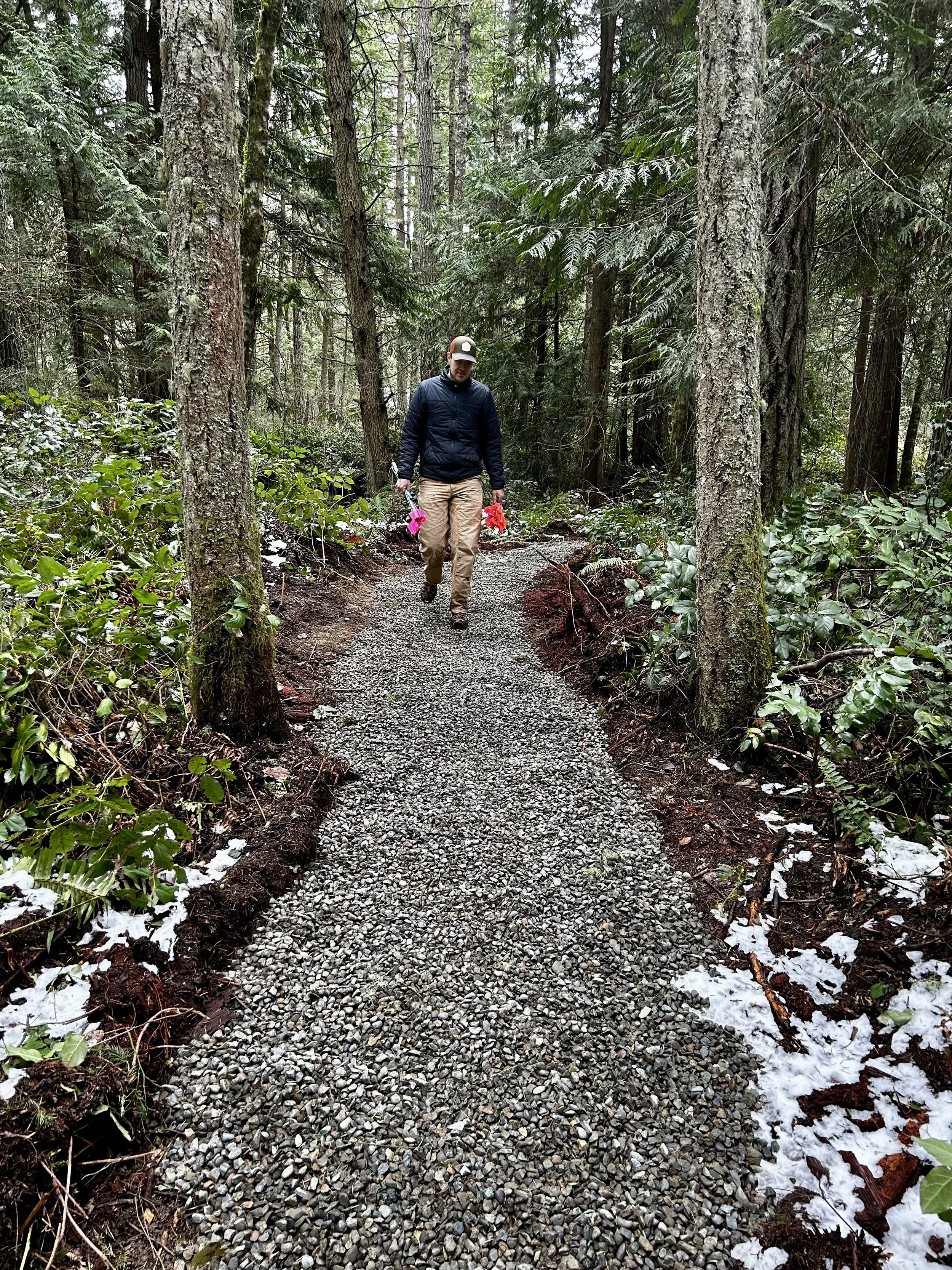 We designed and constructed about a mile of ADA style trails encompassing a beautiful home on the Olympic Peninsula that included: